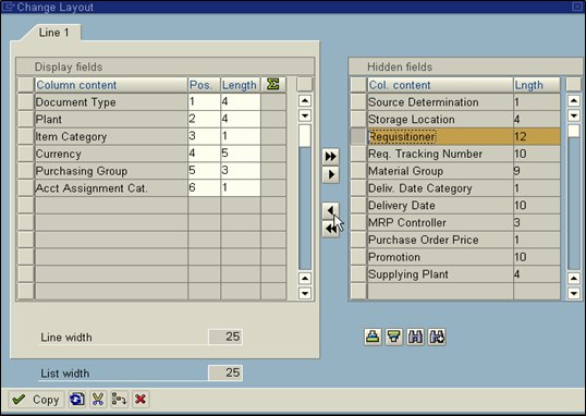 The goal in this area is to move items from the Hidden fields to the Display fields to set default values that will be populated when you create a requisition.