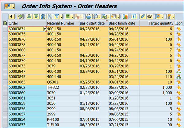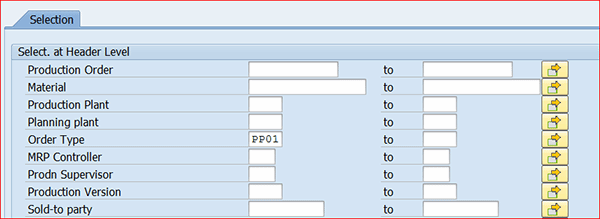When running any SAP report, standard or flexible analysis, you can only select a range of values (see Figure 4). For example, the "Production Order" field (see Figure 2) shows a range of production orders that the system will display when executing this report. However, what if you wanted to view the production reports of specific production orders outside of the specified range, and not the entire range of production orders? This is possible by choosing the Multiple Selection icon located to the right of every field. (In Figure 4, the Multiple Selection icon is at the end of every line in yellow.) In this example, clicking the Multiple Selection icon for "Material" opened the window in Figure 5.