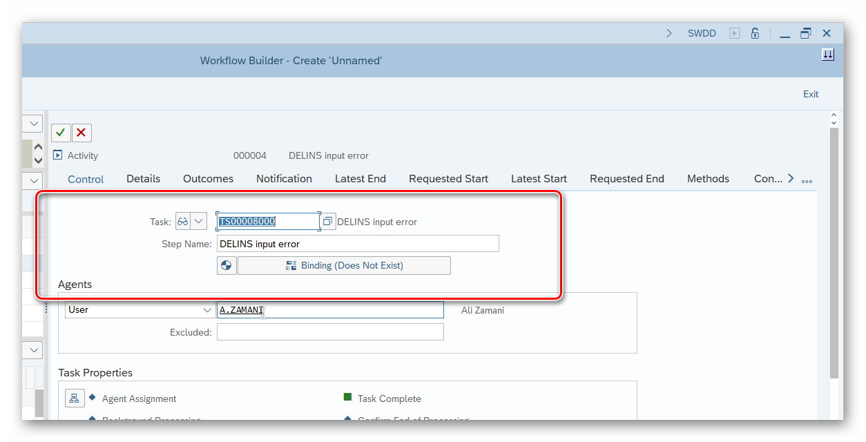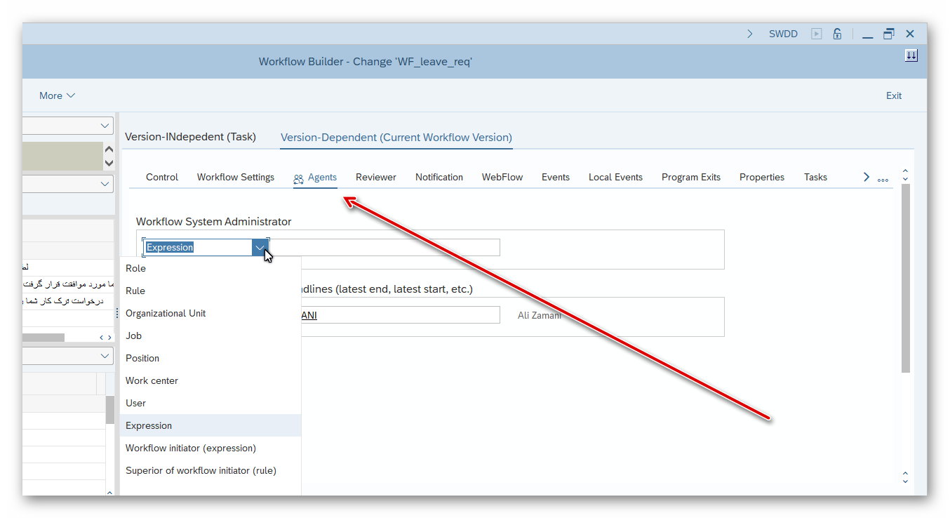 عبارت است از کاربر یا گروهی از کاربران که باید ورک آیتم را مشاهده و اجرا کنند.مثال در تصویر مربوط به تسک پایین کاربر ALI ZAMANI به عنوان agent معرفی شده است.برای تعیین کاربر روشهای مختلفی وجود دارد مثال ممکن است مستقیما کاربری را انتخاب کنیم یا با نوشتن module function این کار را انجام دهیم،روش دیگر ایجاد یک ساختار سازمانی یا پوزیشن و تخصیص کاربران به آن می باشد.